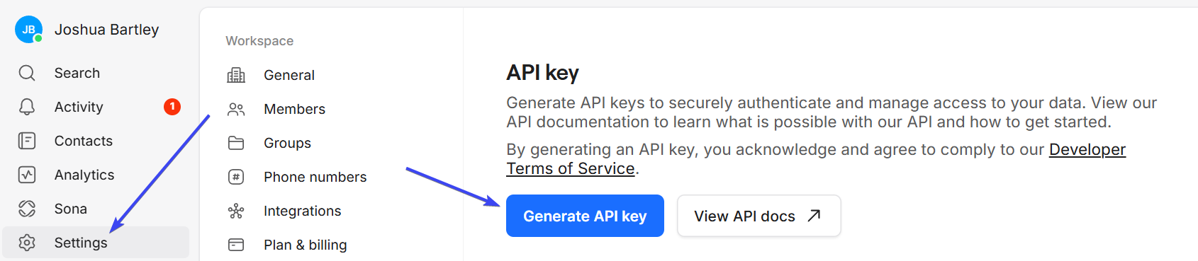 You can create an API key in your Quo account, go to Settings-> General API Key and copy what is created to your Campaign Deputy Integration settings.