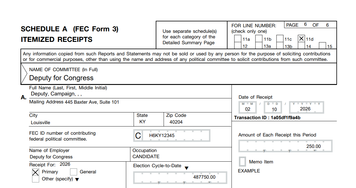 When this special Candidate record has any contributions or disbursements, the FEC electronic reporting requirements require us to label it as a candidate with the code CAN. We're also required to include the candidate's candidate ID, which starts with H, S, or P for the candidate. This may show up as the committee number on the printed PDF.